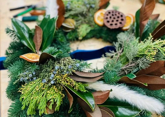 In this hands-on holiday wreath making workshop, you’ll craft a beautiful, fragrant wreath using seasonal evergreens like pine, spruce, and cedar. Add pops of color with bright berries and festive accents as you learn simple DIY wreath techniques to create a unique design. You’ll leave with a one-of-a-kind wreath that’s perfect for decorating your home or giving as a thoughtful holiday gift.